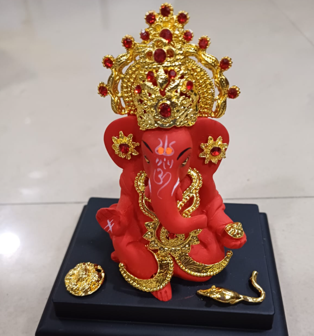 Ganesha Idol Gold Crown With Base Red – "4 inch" Polyresin | Car, Gift, Home | 3-Y Warranty | Dev Tattva