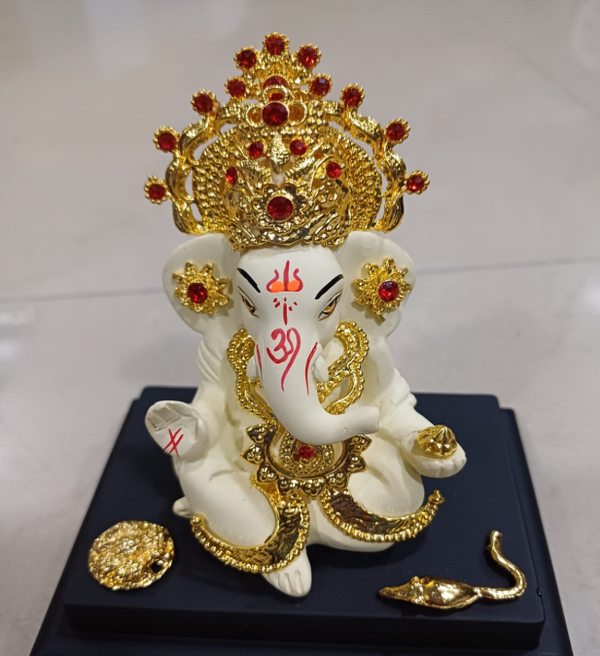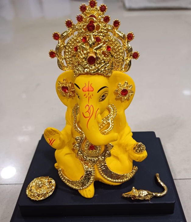 Ganesha Idol Gold Crown With Base Yellow – "4 inch" Polyresin | Car, Gift, Home | 3-Y Warranty | Dev Tattva