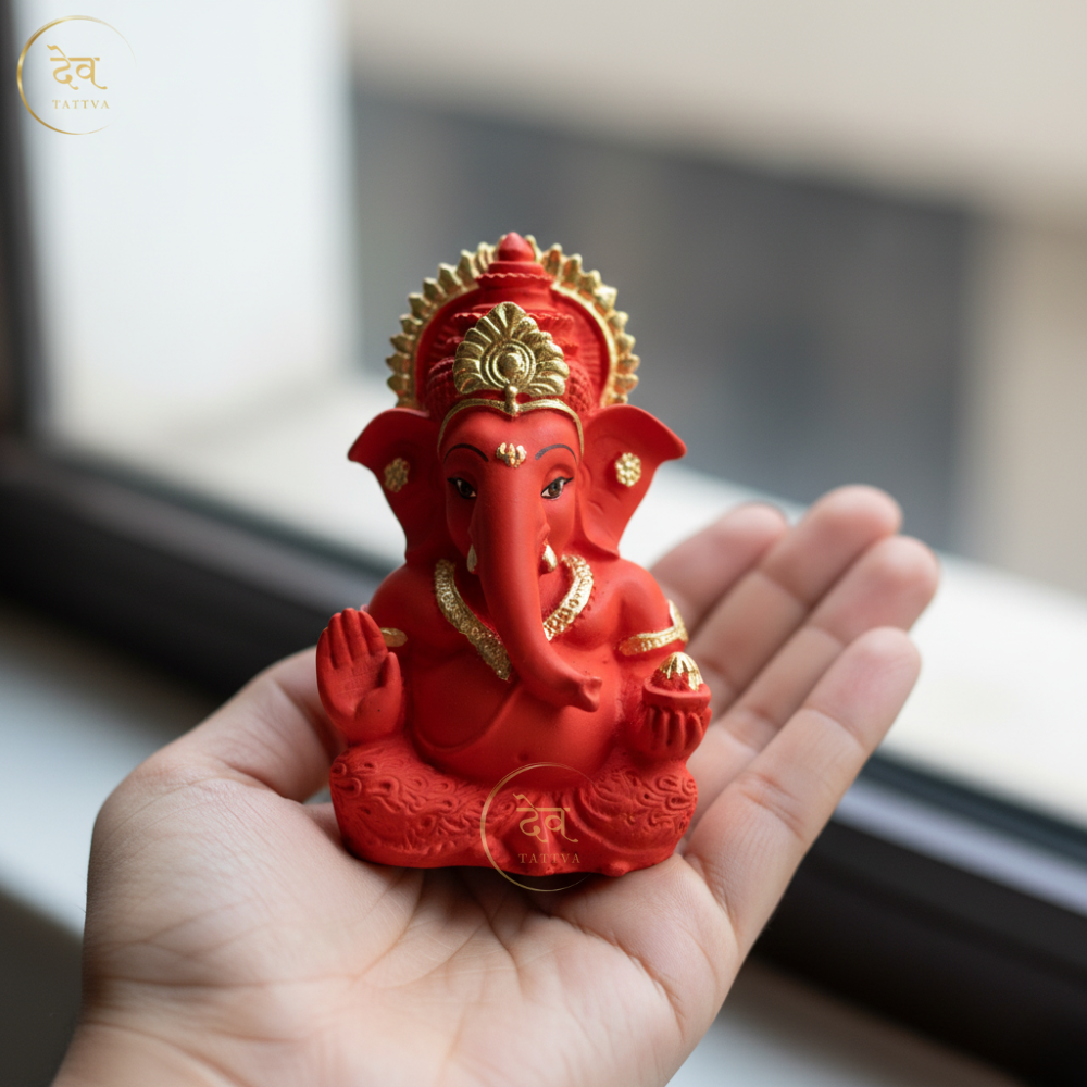 Ganesha Idol Matte Red Gold – "3.5 inch" Polyresin | Car, Gift, Home | 3-Y Warranty | Dev Tattva
